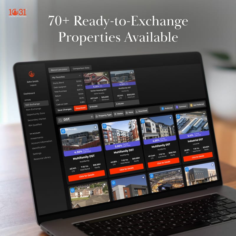 1031 Crowdfunding operates the largest DST marketplace in the country, with 70+ ready-to-exchange investments available at any given time and over 1,800 successful 1031 exchanges completed.